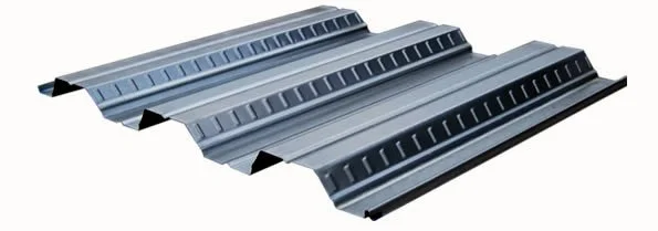 Figure 1. Steel deck designed for a composite slab. Corrugations make the deck stiff. Dimples connect the deck to the concrete slab, allowing composite action. This particular deck is W3 Formlok from Verco Decking, Inc. Other manufacturers may use different shapes but the principles, including the benefits of steel fibers, remain the same.
